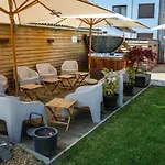 Leisure facilities feature a hot tub and a sundeck.